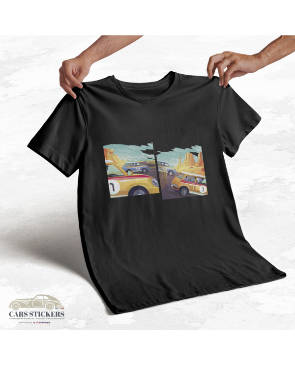 Ce t-shirt noir à col rond, c’est l’accessoire ultime pour les amoureux de courses automobiles dans la joie et la bonne humeur ! Imagine des bolides colorés lancés à pleine vitesse dans le désert : Adrénaline et esthétique assurées !